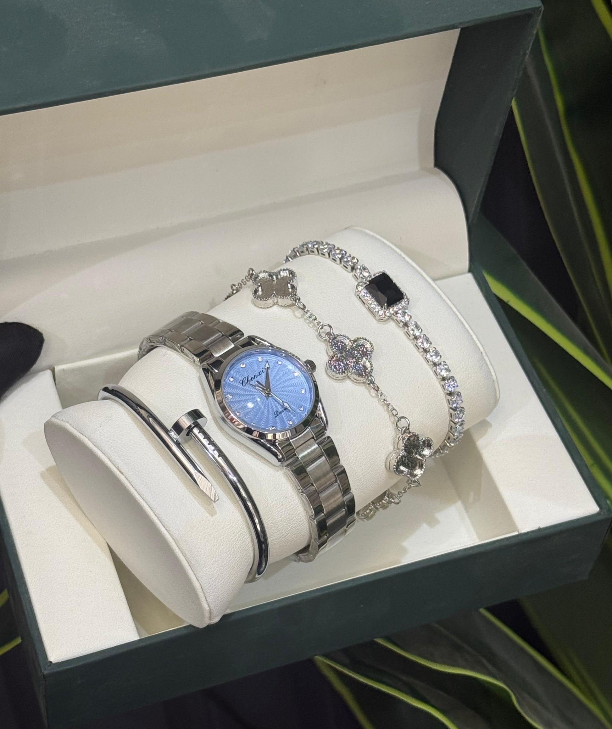 A refined timepiece set crafted for women who appreciate class without the noise. This CHENXI package brings together a sleek wristwatch, matching bracelets, and a premium gift presentation — making it perfect for personal use or gifting.