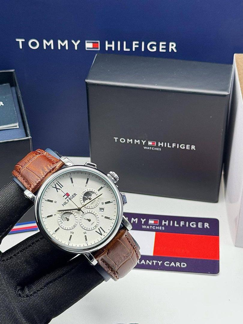 Upgrade your style with the TOMMY HILFIGER LEATHER _CHRONOGRAPH_ COMES WITH BOX, BAG AND WARRANTY CARD.